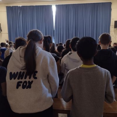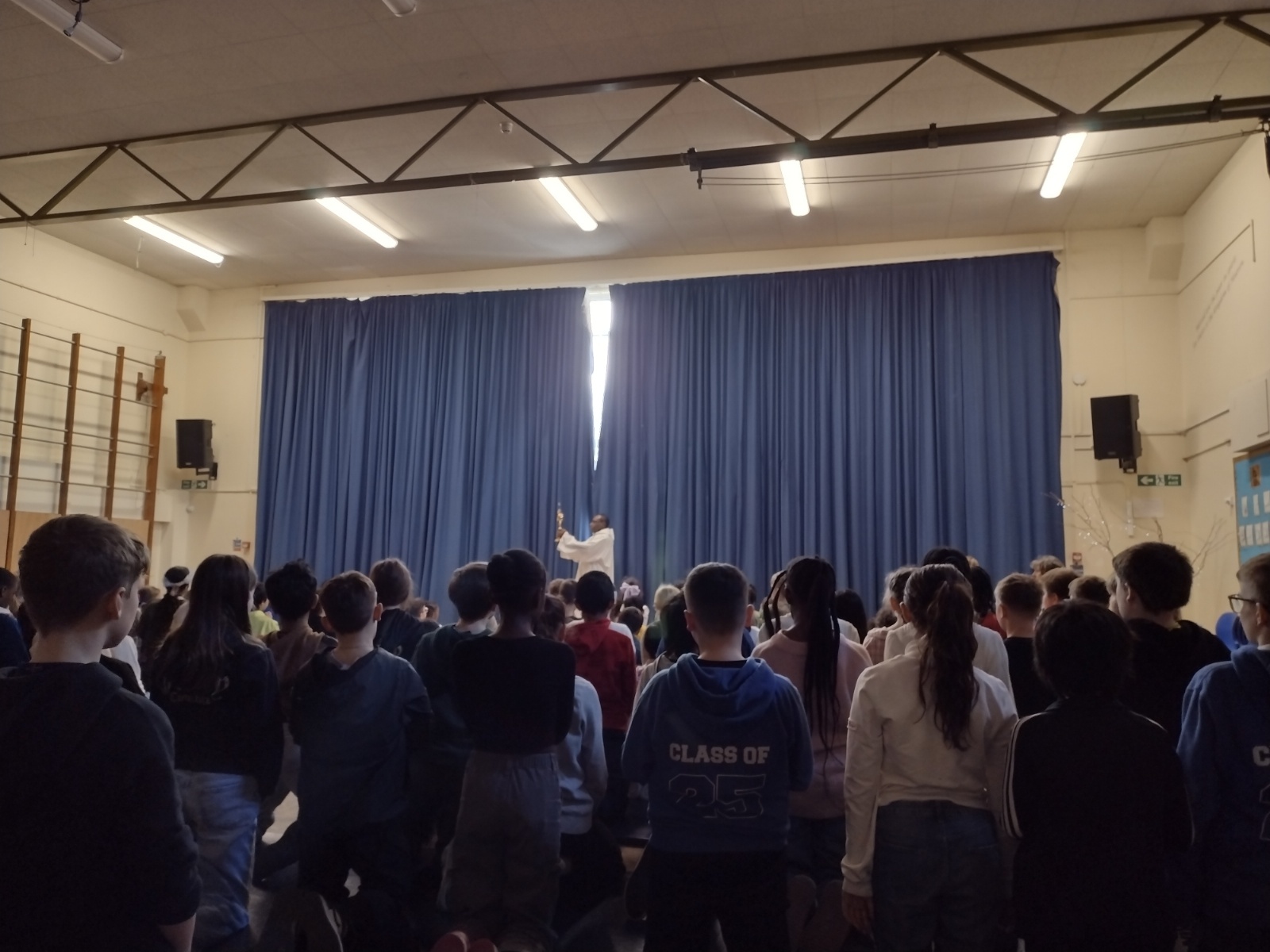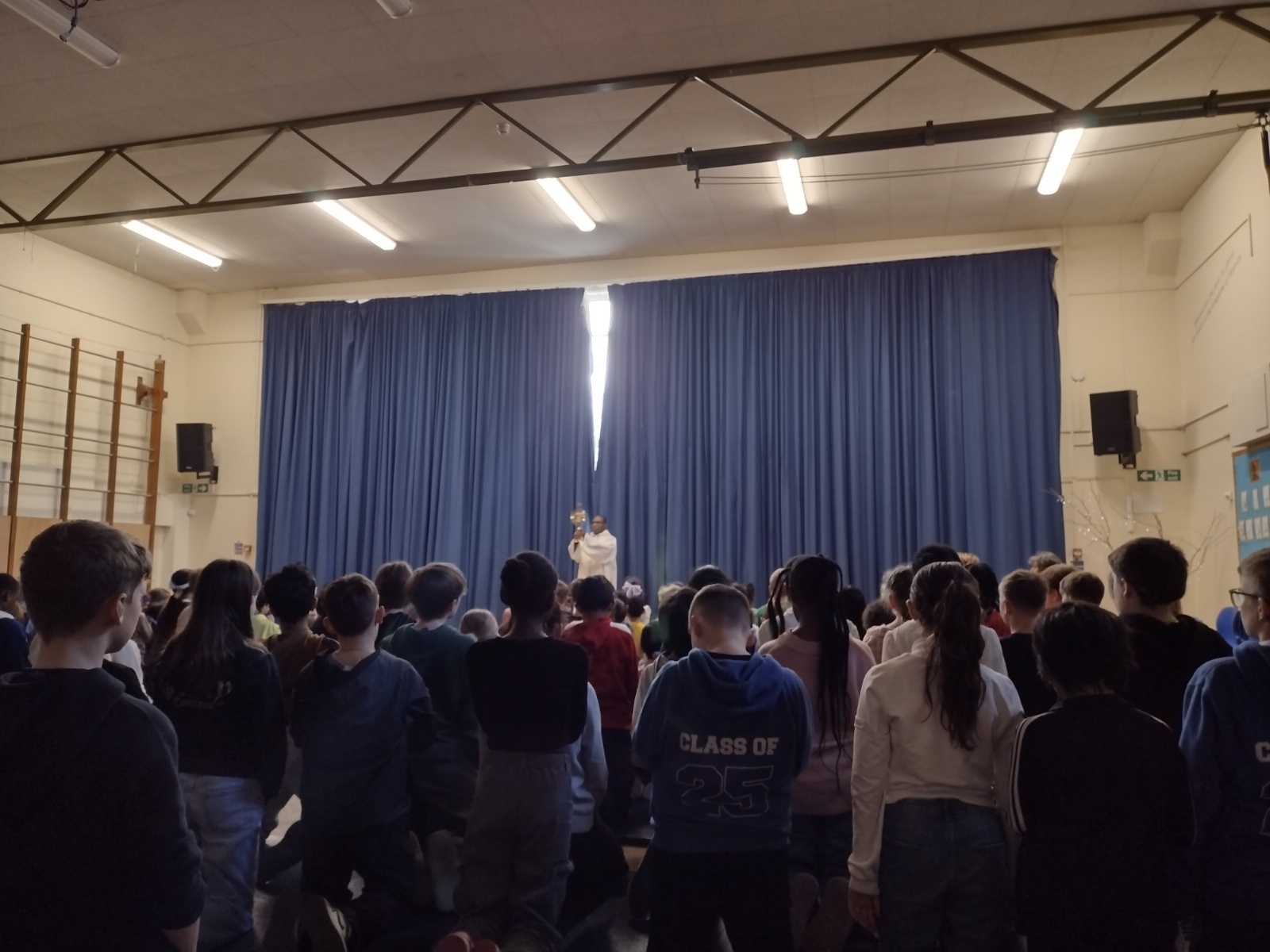 Our KS2 children at the Adoration in front of the monstrance.